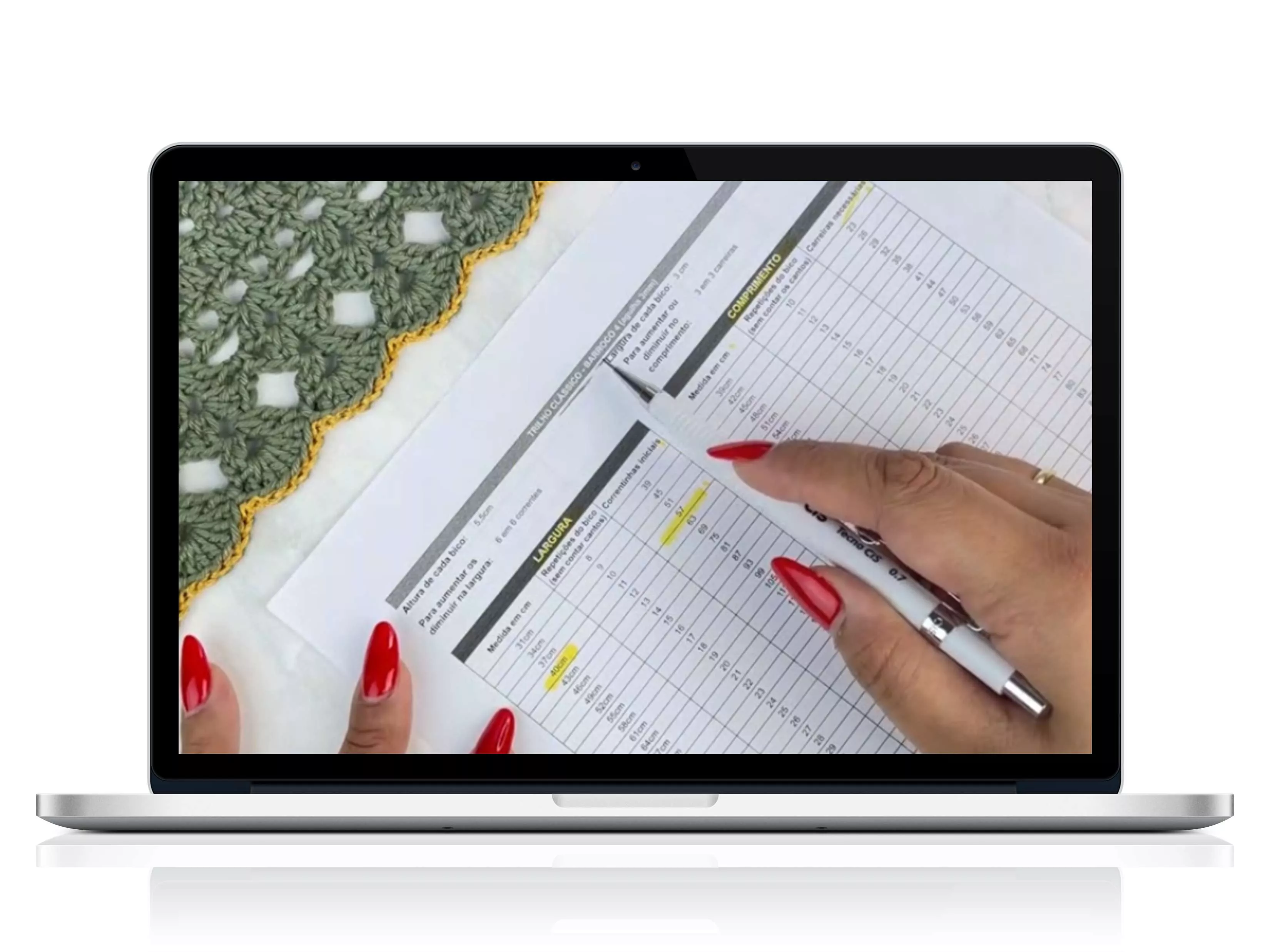 As crocheteiras mais experientes adoram uma receita escrita para tirar aquela dúvida pontual na hora de crochetar, não é mesmo? Por isso, além da videoaula explicadinha, nossas aulas também contam com a receita escrita, detalhada com cada carreira.