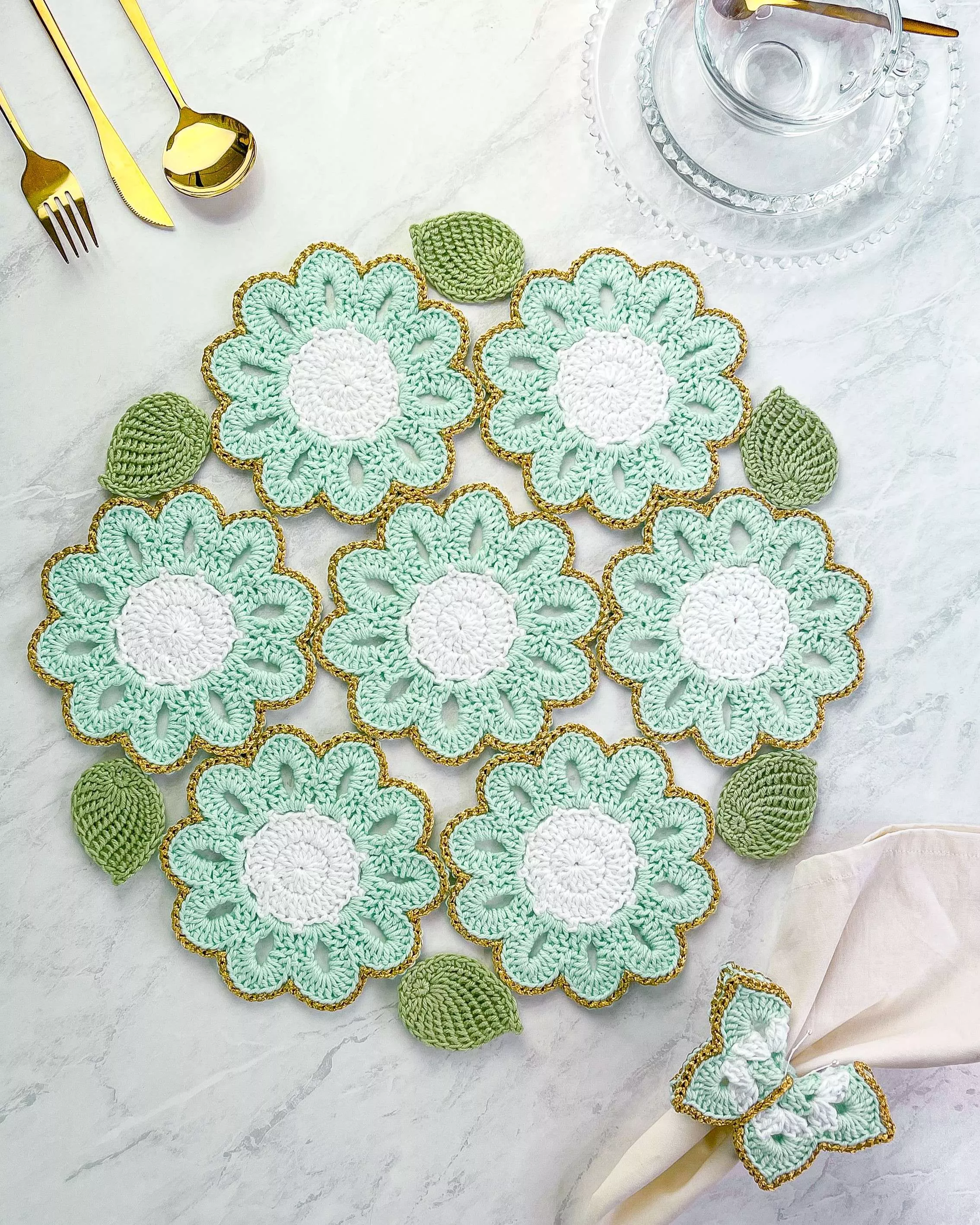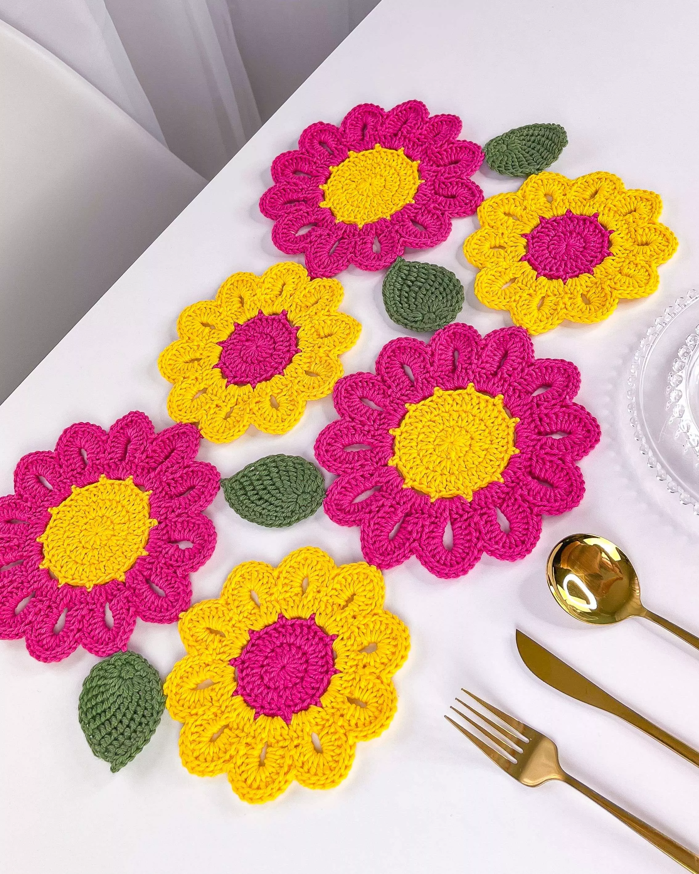 Sabendo da forte tendência das flores e dos Trilhos de Mesa Elegantes, criamos este design que é lindo, gostoso de tecer e que vende demais!