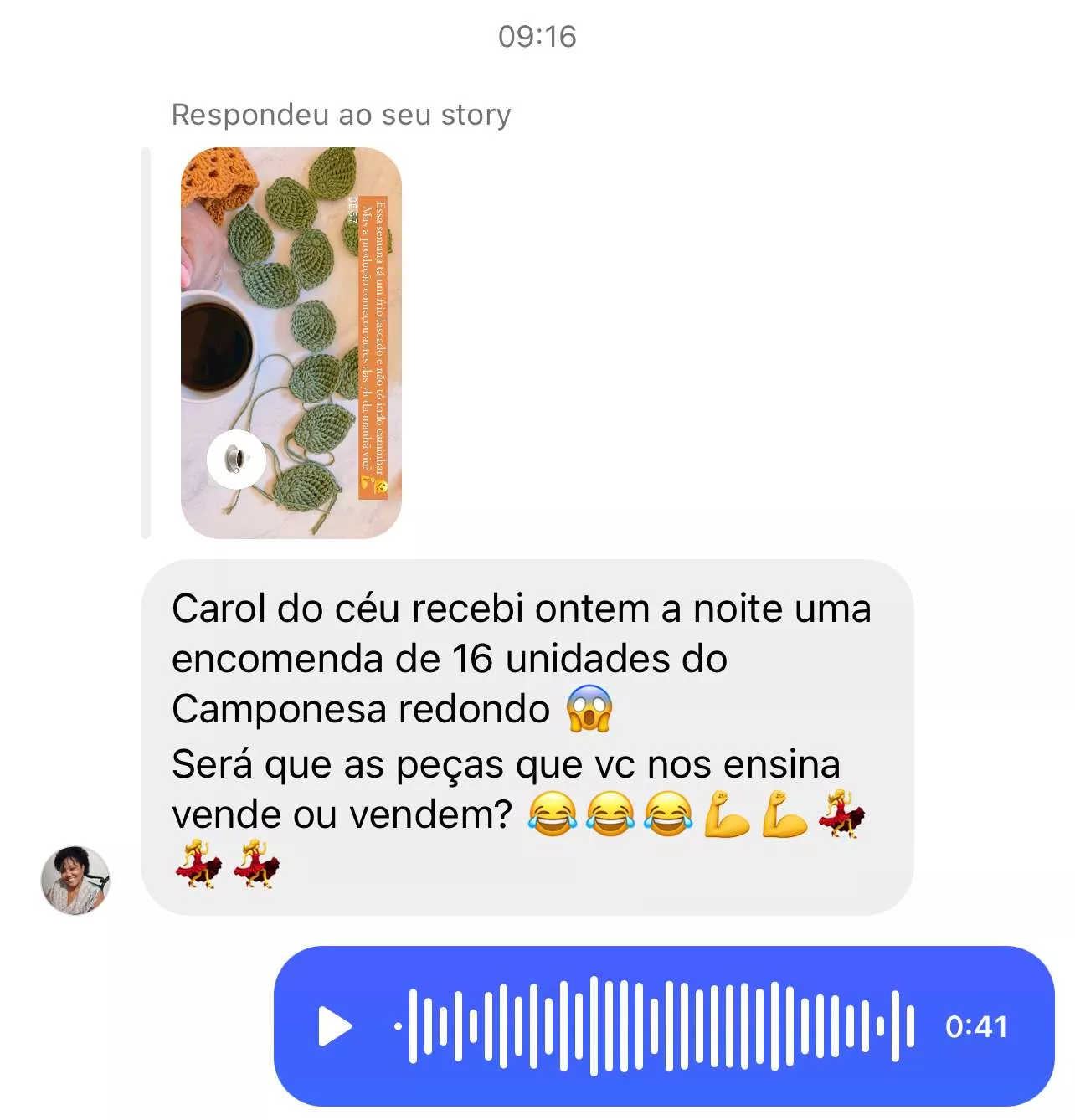 São muitas crocheteiras com encomendas e não caberia tudo aqui, então vou te mostrar apenas alguns dos directs que recebo diariamente